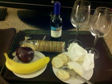 It’s a hard choice sometimes, especially after a long day of travel. The real question should be, “what do I get?” I mean why can’t we ask that?? Some hotels give you huge wonderful trays of cheeses and crackers with wine. Others give you a tiny sliver of brie with 6 crackers and a water. I mean how do you really decide?